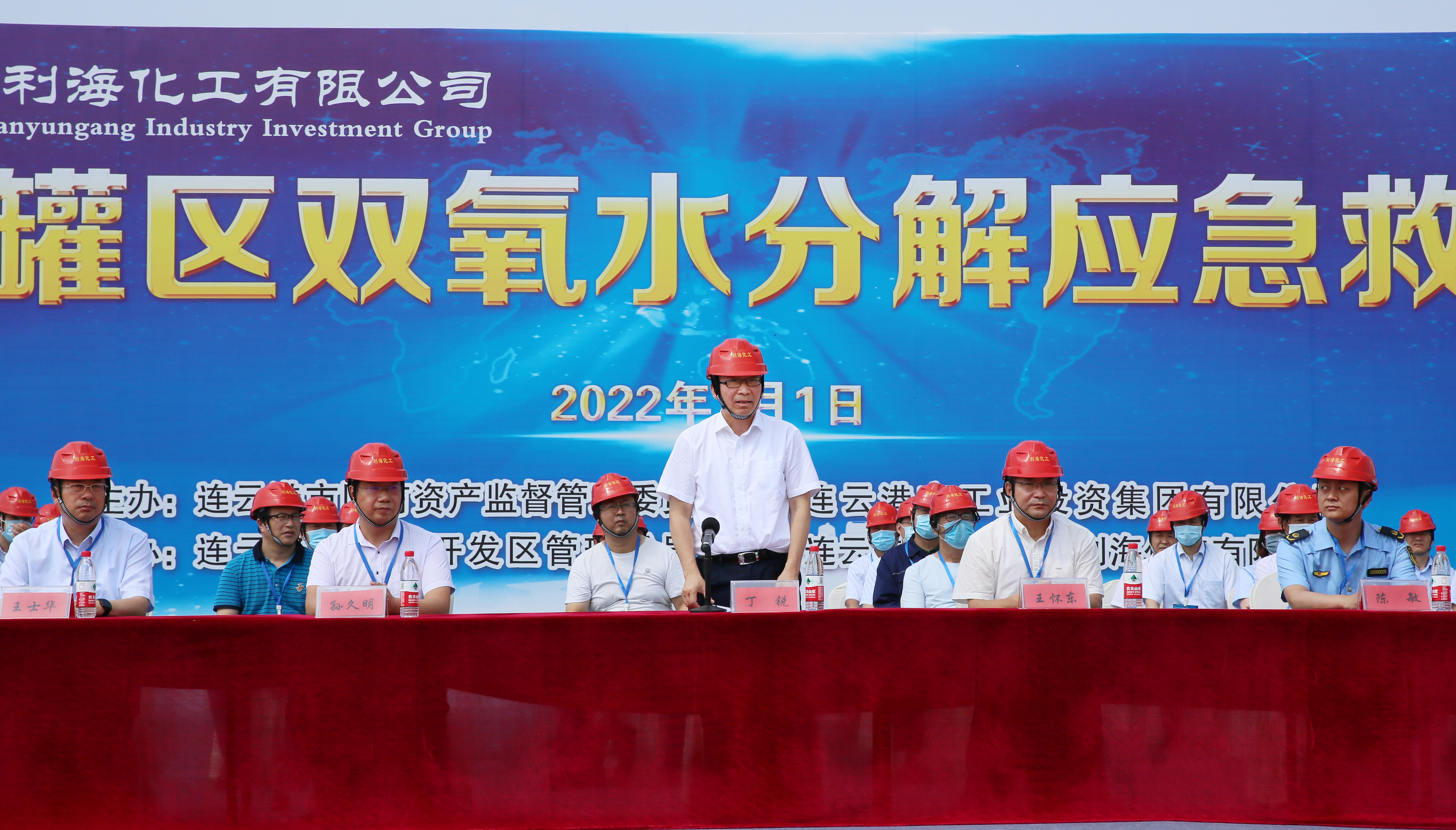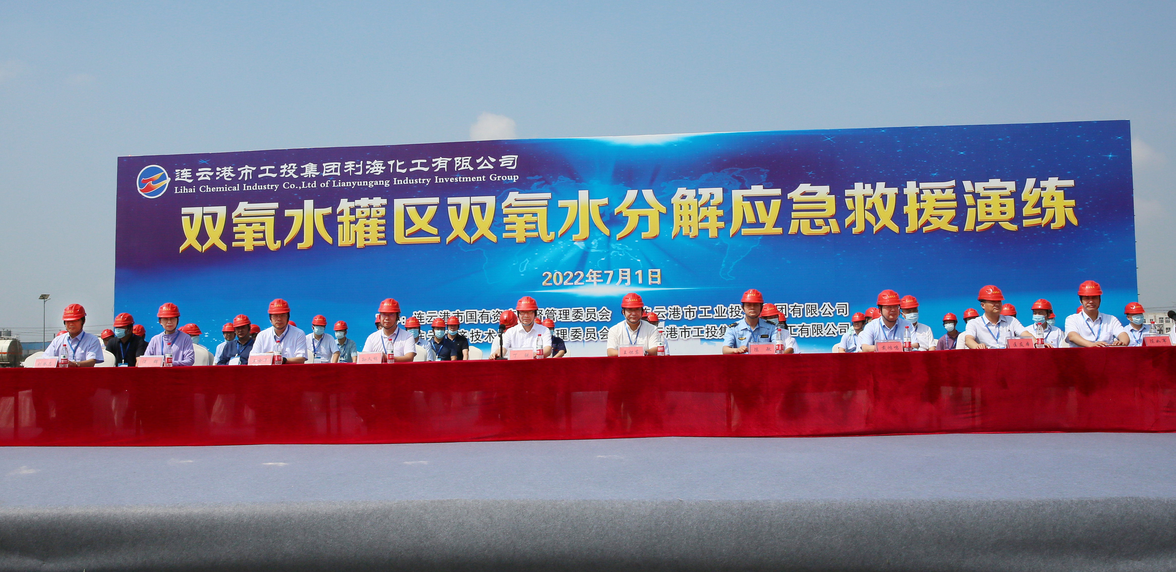7月1日上午,集團公司在利?;す鹃_展雙氧水罐區雙氧水分解應急處置演練。市國資委黨委委員、三級調研員王懷東,集團公司安委會成員,各權屬單位主要負責人、分管安全負責人觀摩演練。集團公司董事長、黨委書記丁銳宣布演練開始并作點評。