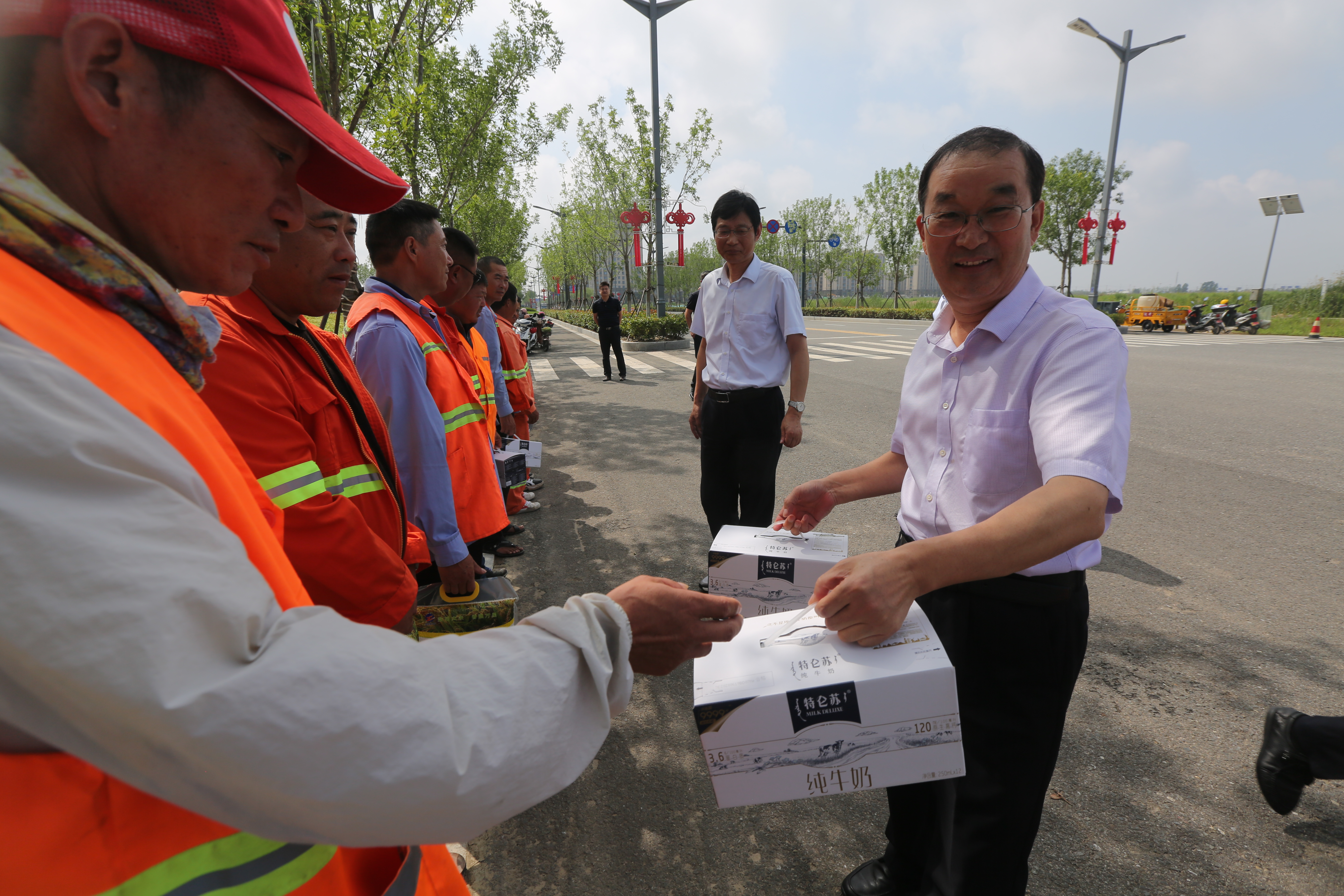7月28日,集團(tuán)公司黨委書(shū)記、董事長(zhǎng)楊龍,總經(jīng)理胡建明等領(lǐng)導(dǎo)輕車(chē)簡(jiǎn)從,分赴基層一線,深入車(chē)間班組、灘頭田間,走訪慰問(wèn)在高溫下堅(jiān)守崗位的廣大職工,送去白糖、綠豆、牛奶、大米等防暑降溫物品,在炎炎夏日將“清涼”送到職工的心坎上。