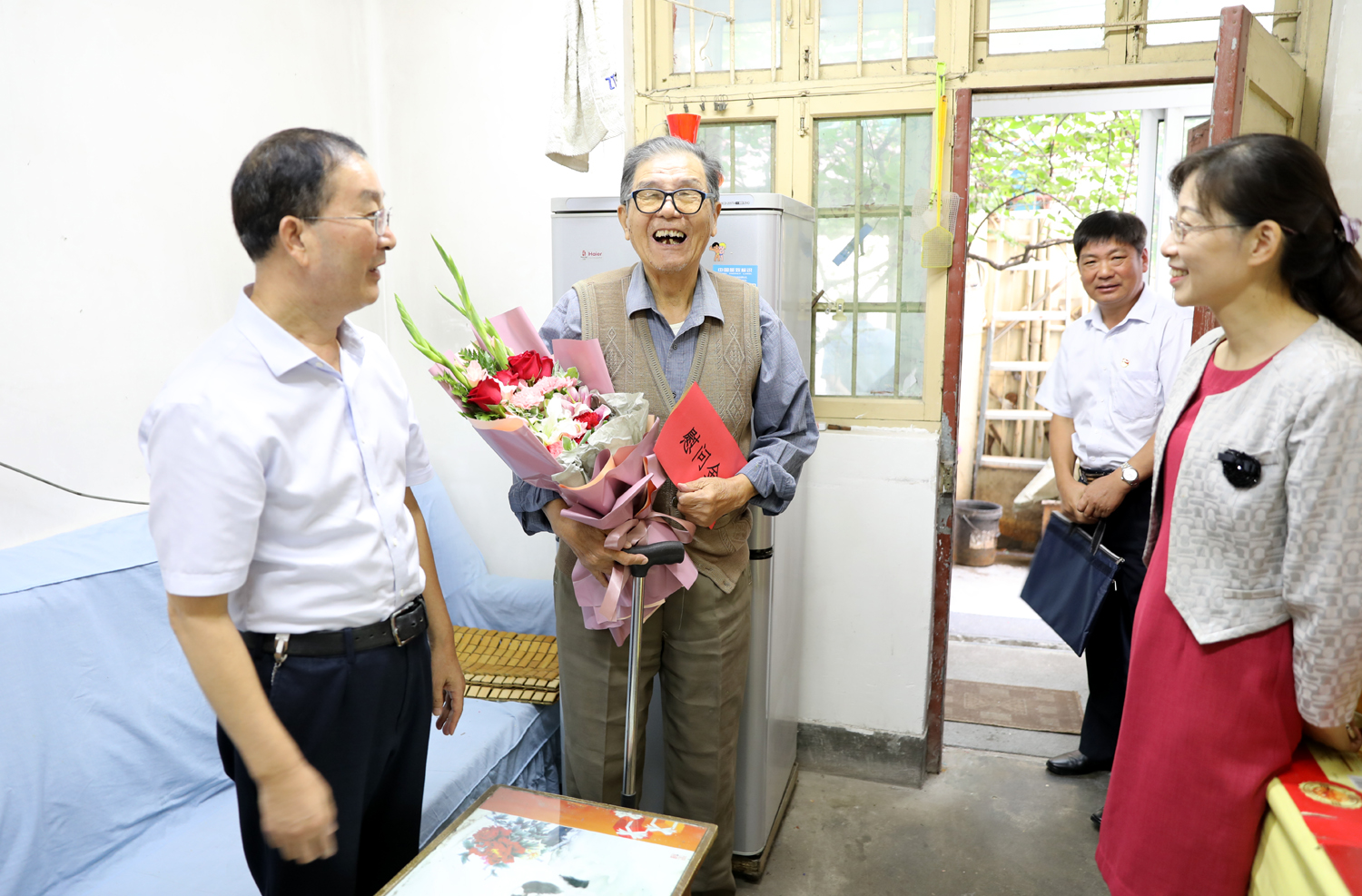 每到一處,集團(tuán)公司領(lǐng)導(dǎo)都與老人們拉家常,詳細(xì)詢(xún)問(wèn)他們家庭生活情況和身體健康情況,介紹集團(tuán)公司發(fā)展情況,感謝老同志對(duì)新中國(guó)建設(shè)事業(yè)與集團(tuán)公司改革發(fā)展作出的重要貢獻(xiàn)。并指出,在新中國(guó)波瀾壯闊的革命建設(shè)歷程中,無(wú)數(shù)黨員前仆后繼作出了貢獻(xiàn)和犧牲。老黨員、老同志是我們的寶貴財(cái)富,要大力弘揚(yáng)老一輩的優(yōu)良傳統(tǒng),要帶著感情和責(zé)任做好服務(wù),從生活上、精神上更加關(guān)心、關(guān)愛(ài)他們,及時(shí)幫助解決生活中的困難和問(wèn)題,讓老黨員老有所養(yǎng)、老有所樂(lè)。