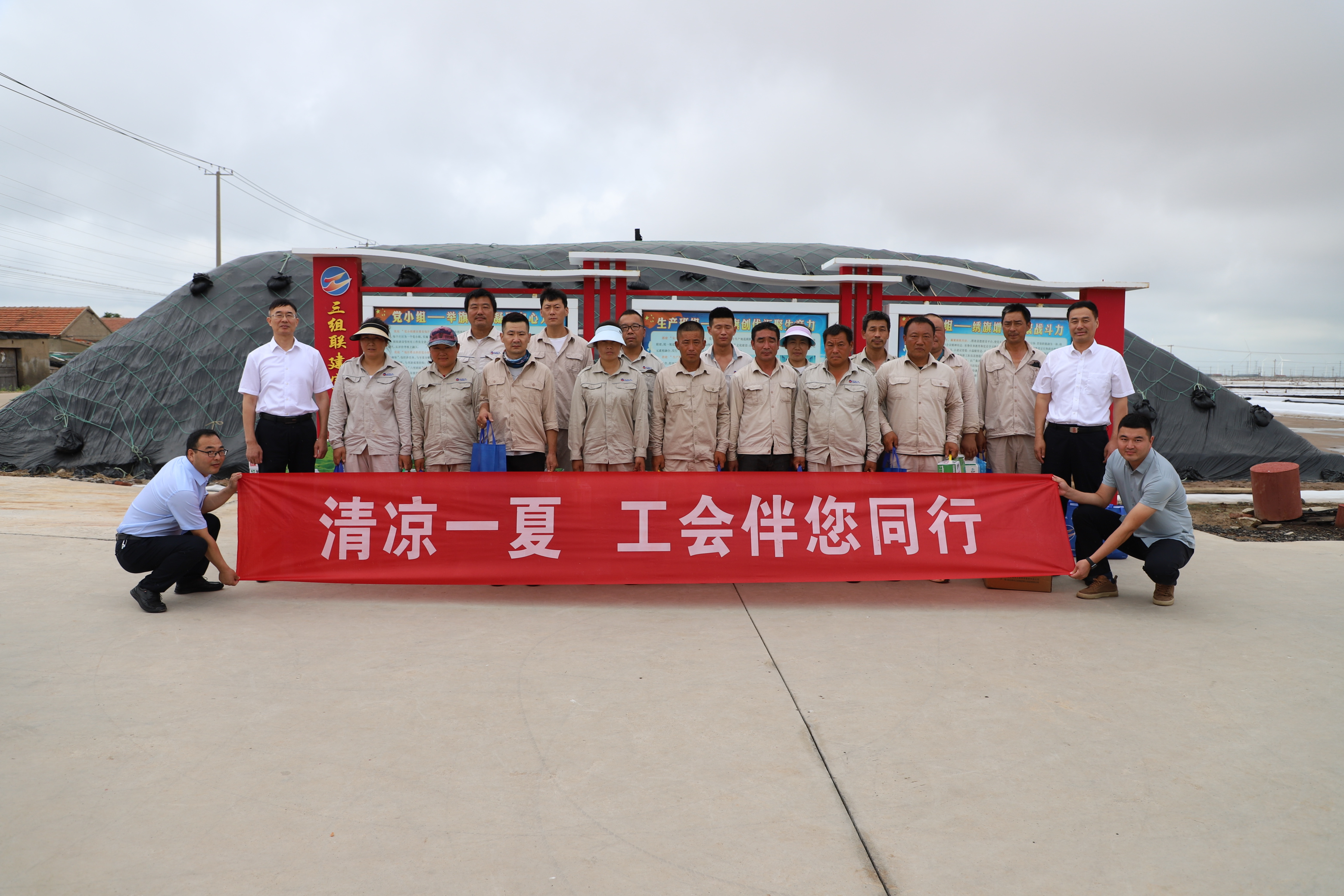 似火的驕陽擋不住心系職工的腳步,正逢炎夏的7月18日,集團公司黨委副書記、副董事長、總經理張六林,副總經理陳如軍等一行深入日曬制鹽公司灘頭為奮戰在一線的職工“送清涼”。投資公司黨委書記、董事長孫政權,總經理吳衛平,黨委副書記、工會主席王宏,常務副總經理徐一林陪同。