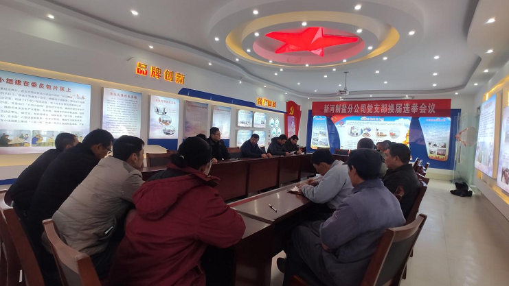 2021年4月1日上午,新河制鹽分公司黨支部委員會召開換屆選舉會議,會議由黨支部副書記耿劉主持,并作了換屆選舉工作報告。