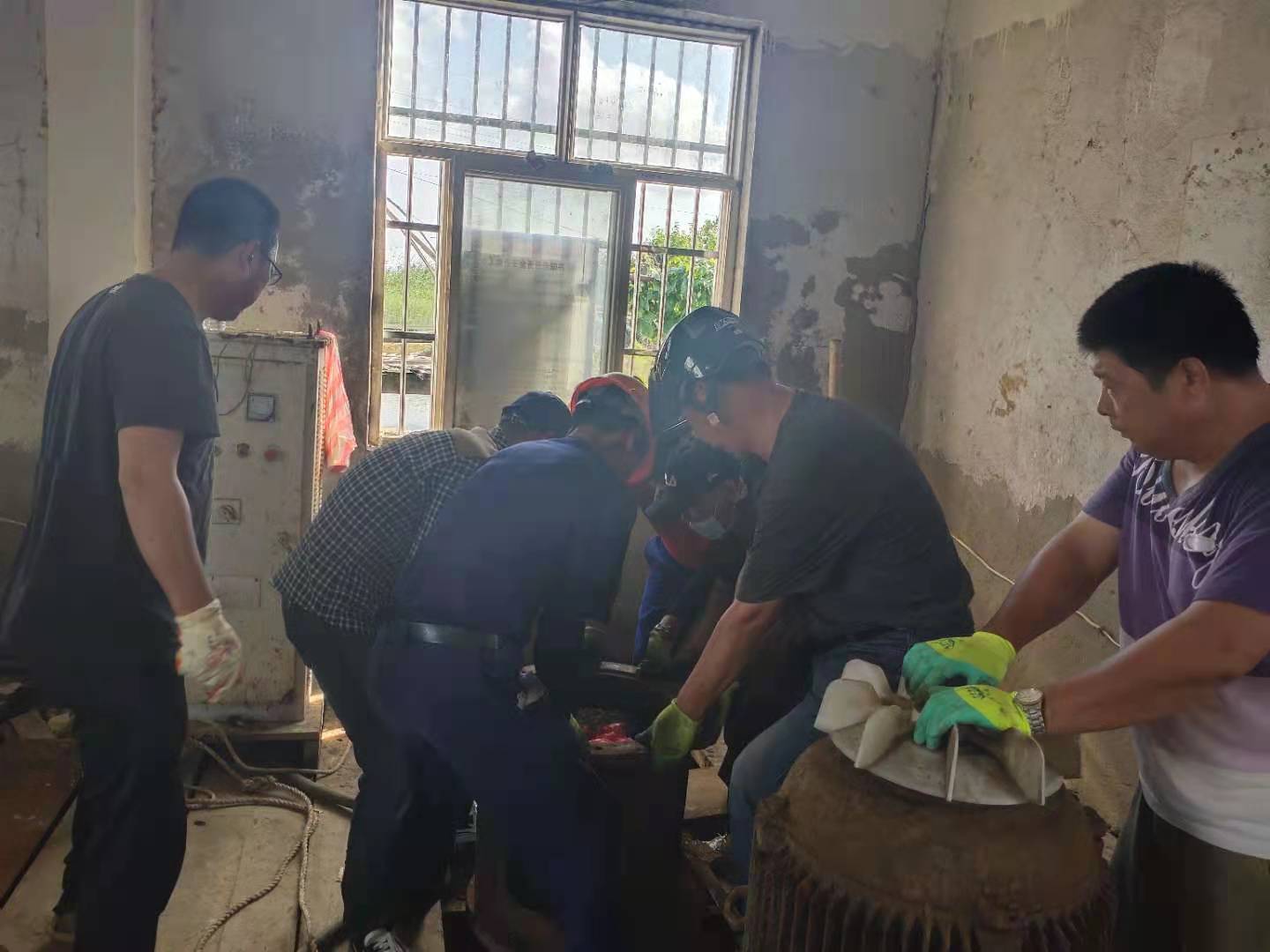 鑒于此次疫情已經迅速波及國內多個省市,防控形勢十分嚴峻。當前又正值海水養(yǎng)殖戶用水高峰,連續(xù)多日供水使六圩閘大站5臺155KW軸流泵其中三臺出現(xiàn)故障,小站2臺55KW軸流泵全部發(fā)生故障,機泵不能正常運轉。資源管理中心當即召開班子會議,對防疫和修泵工作進行統(tǒng)籌部署,明確分工,壓實責任,積極做好防疫宣傳引導,不留死角;搶修機泵做到安全監(jiān)護管理到位,確保潮汛來臨之前要維修到位,不誤供水。為了搶時間趕進度,該公司經理江德全多方協(xié)調,從兄弟單位借調2名年輕機修工錢明星和楊加棟來協(xié)助機修組,并安排六圩閘站全體員工參與。他們頂著機房30多度的高溫加班加點,中午吃著快餐,飯后又立即投入搶修工作中,通過六天的連續(xù)奮戰(zhàn),機器全部維修到位,保證了泵站及時供水。(資源管理中心宣)