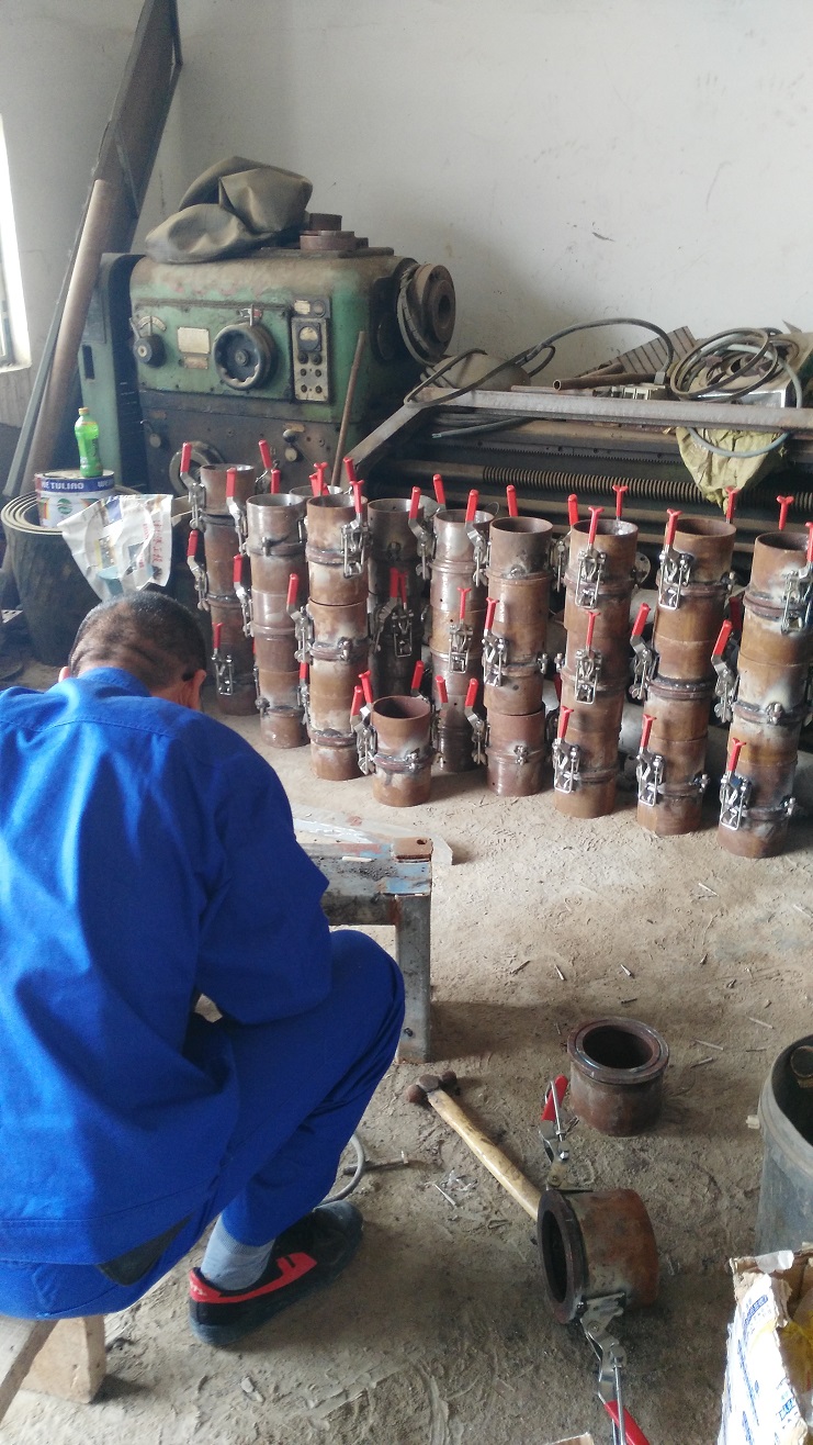 為提高扒鹽管道安裝速度,減輕鹽業工人勞動負荷,連日來,機電服務公司制作人員認真進行管道快接頭制作,他們分工負責,2人專門焊接,4人進行管道接頭安裝,預計本周五一臺機組63節管道,4個彎頭制作完成,下周進行實際試用。(機電服務公司)