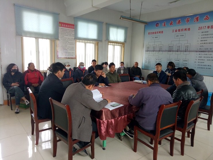 該公司經理何正軍首先對本單位員工提了幾點要求:1、在實業公司范圍內,禁止一切養殖活動;2、關于員工的請假制度;3、單位生產物資的管理。之后由書記沈玉波宣傳場投資公司及工會開展的“拼搏二季度、實現雙過半”勞動競賽的要求,學習李國文董事長的講話:一、認清形勢、正視不足;二、明確目標,狠抓干勁;三、嚴明紀律,團結拼搏,大干不忘安全。沈書記安排了全年各班組制鹵目標任務:海鹽基地一班,14000方;二班,24000方;三班,12000方。布置了二季度工作,并帶領大家簡要學習了《中華人民共和國監察法》。最后海鹽基地的班組長簽訂了承諾書、全年目標責任書。(史祥燕)