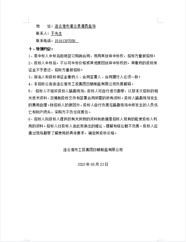 日曬制鹽有限公司電纜等物資招標公告