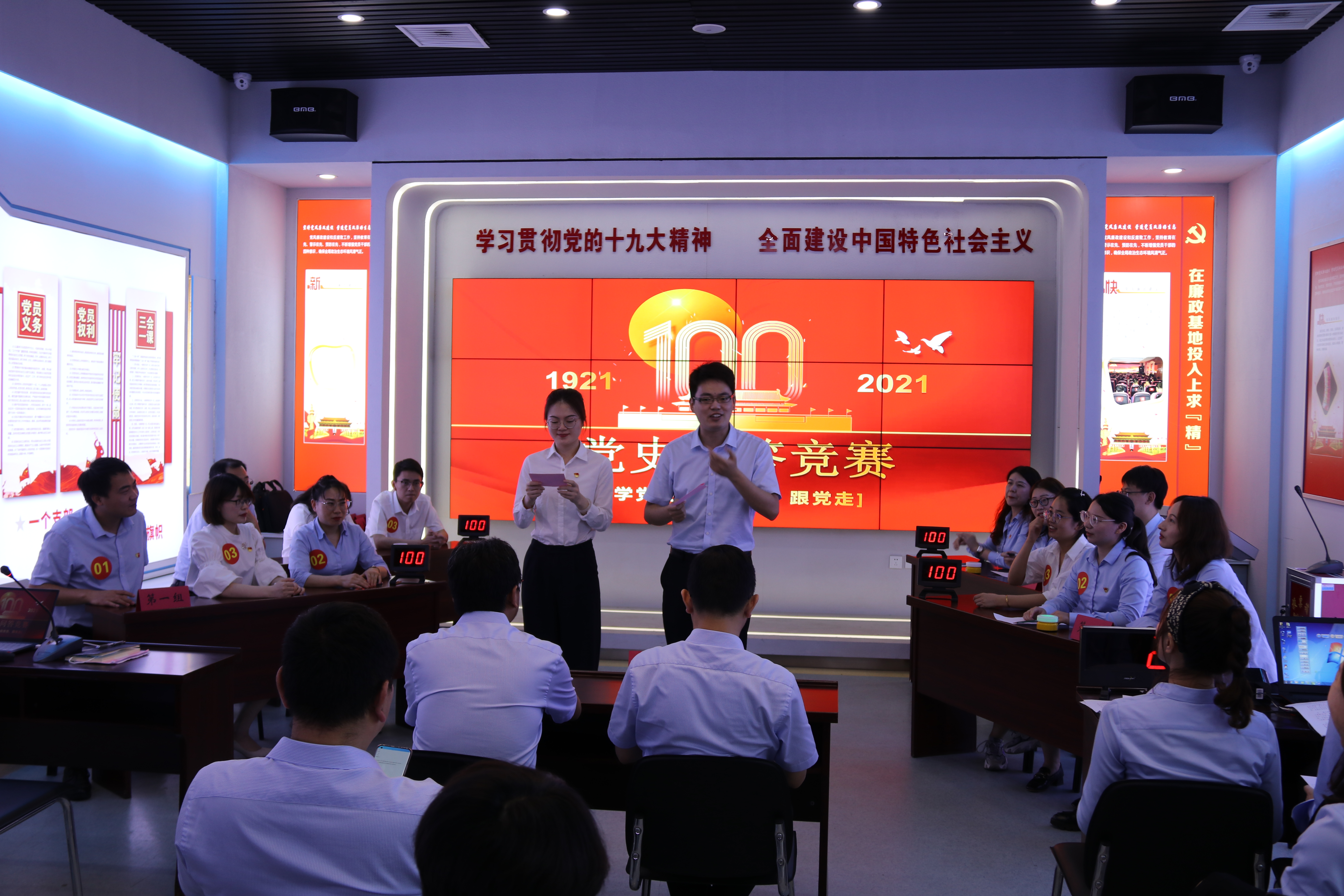 | 6月30日下午,資產(chǎn)管理公司黨支部舉辦“學黨史、知黨情、跟黨走”暨慶祝中國共產(chǎn)黨成立100周年黨史知識競賽。支部全體黨員干部職工共50余人參加了本次活動。