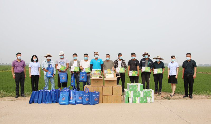 7月19日上午,驕陽似火,集團紀委書記汪群到青口公司慰問奮戰在一線的條田工、揚水工等, 并把綠豆、白糖、牛奶等“清涼禮包”遞到他們手中,為他們送去集團黨委的關心關懷和工會組織的關愛。青口公司黨委書記、董事長、總經理史祥平,黨委副書記、工會主席梁永陪同慰問。
