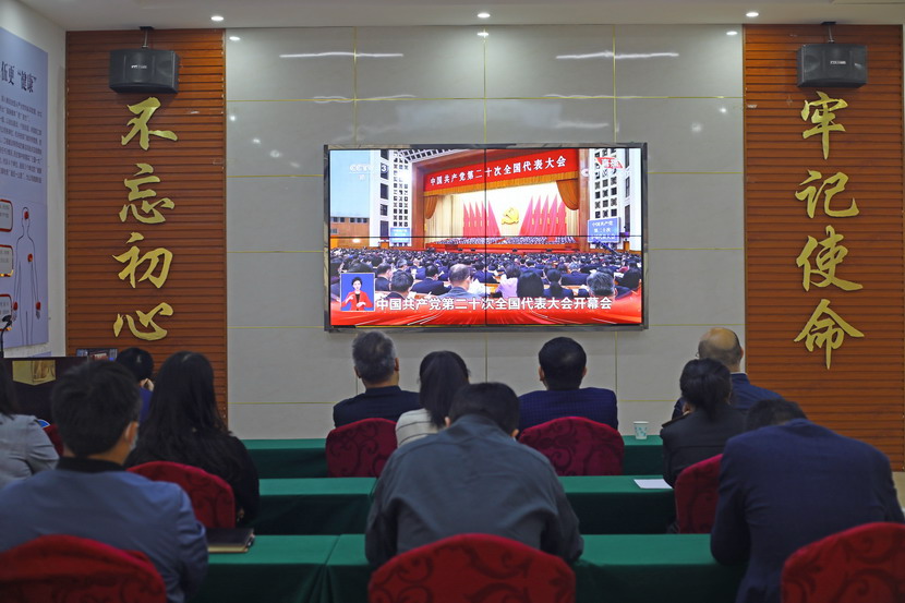 ? ? ? ??臺(tái)北投資公司廣大黨員干部群眾早早端坐在屏幕前,懷著激動(dòng)的心情,收聽(tīng)收看黨的二十大開(kāi)幕會(huì),認(rèn)真聆聽(tīng)習(xí)近平總書(shū)記所作的報(bào)告。公司領(lǐng)導(dǎo)王德志、楊善革、張海寧、卞霄以及各部門(mén)負(fù)責(zé)人在機(jī)關(guān)廉政會(huì)堂集中收看,各基層單位廣大黨員或在支部,或通過(guò)視頻會(huì)議,或在工作崗位休息間隙,收聽(tīng)收看開(kāi)幕會(huì)盛況。