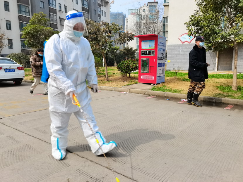 孫銀:“請大家抬一下腳,靠邊站一下,我將您的周圍噴灑消毒液進行消毒,謝謝配合!”