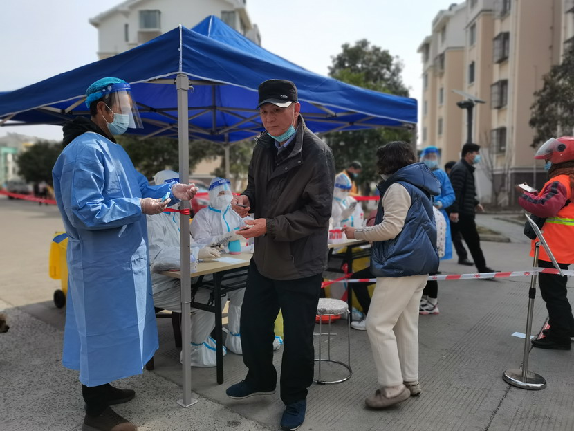 夜里940分,昌圩臨時黨支部抗疫工作群里信息不斷:“同志們,剛接社區緊急通知,明天要進行第五輪核酸檢測,還沒有睡的同志們請到社區緊急集合,又增加兩個檢測點,抓緊去建點擺臺。” “霍正鋼收到、蘇玲收到、秦黎明收到、朱文健收到、邱榮濱收到、于洪亮收到……”,“好,晚上溫度比較低,請大家穿暖和一點,10點社區準時集合。”昌圩臨時黨支部書記李明發完最后一條信息,穿好馬甲,戴上口罩,出發下樓。