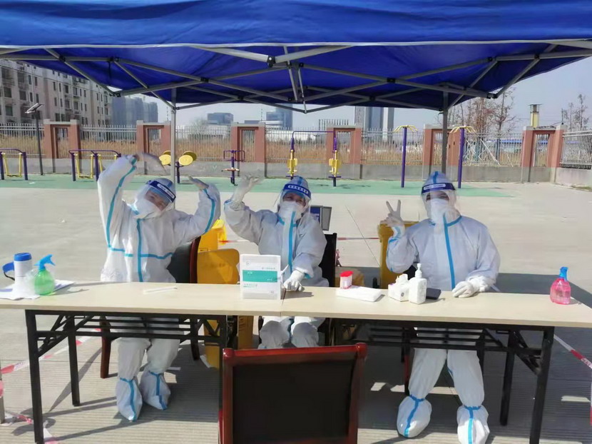 志愿服務篇。“現(xiàn)在我們是封控區(qū),不能出去給政府添亂,閑也是閑著,所以社區(qū)一招手我們就來了”這是臺北女工委副主任宋文靜的一席話。這波疫情來的突然,緊急核酸檢測緊缺志愿者服務。在公司”戰(zhàn)疫情、爭貢獻“主題實踐活動感召下,她已經(jīng)在小區(qū)擔綱核酸檢測志愿者有兩個夜晚了。而這一幕決不只在海州主城區(qū),在開發(fā)區(qū)昌圩社區(qū),臺北志愿服務隊已經(jīng)成為社區(qū)防疫主力。疫情伊始,臺北下屬海州灣公司黨支部一班人就已經(jīng)奮戰(zhàn)在社區(qū)防疫一線。黨支部副書記蘇玲、女工胡超,與專業(yè)醫(yī)護人員一道,穿上厚重防護服,直接站在核酸檢測最前線,這一站就是12小時。值班后稍作休息他們就又聯(lián)系總經(jīng)理霍正鋼,翔立黨支部副書記姜海洋,入黨積極分子朱文健等參與聯(lián)防聯(lián)控,擔當疫情義務宣傳員。