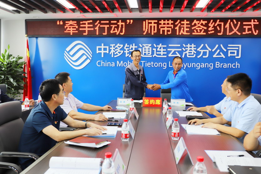 ? ? ? ? “黨建和創”是臺北投資公司、中移鐵通連云港分公司基于產業轉型戰略合作的黨建保障工程。“牽手行動”師徒結對是公司按照建設知識型、技能型、創新型勞動者大軍這一目標任務,切實加強新時代產業工人隊伍建設,大力弘揚工匠精神,充分發揮工匠的示范帶動作用,拓展職工職業技能培養的重要途徑。通過師帶徒方式培養通信工程技術人員,為公司在推進通信工程業務承接中建隊伍,打基礎,推進新一輪產業轉型走的更堅實、堅定,為公司高質快速發展增添新動力。