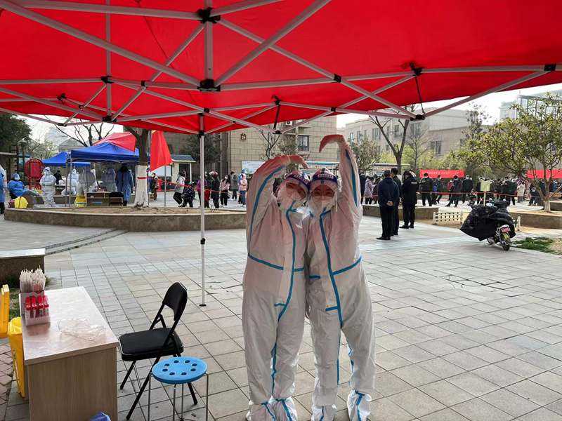 16:00,檢測(cè)進(jìn)入尾聲,忙里偷閑和大家聊會(huì)天,身邊的“大白”來自各行各業(yè),疫情防控戰(zhàn)打響,在這危難時(shí)刻,我們一同挺身而出,臨危受命,“逆行”沖往防疫第一線。大家聽從指揮、主動(dòng)擔(dān)當(dāng)?shù)木唧w行動(dòng),充分體現(xiàn)了年輕黨員能打硬仗、敢打硬仗的優(yōu)良品格!