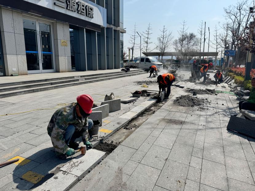 節(jié)日期間,盛達市政分公司在做好對轄區(qū)車流較多路段的巡查與維護工作同時,還做好突發(fā)情況應(yīng)急處理工作,在面對創(chuàng)智大廈大理石面板遭到突發(fā)損壞時,該公司有條不絮,第一時間調(diào)配人員,展開緊急修復工作,及時為創(chuàng)智大廈工作人員和群眾提供安全道路環(huán)境。同時,該公司針對環(huán)保督察組進駐開發(fā)區(qū)事項,全力做好在建工程安全文明施工,雨污水班組加班加點對重點區(qū)域進行巡查,在東方大道與躍湖路交匯處的污水連接井項目上,施工人員有序進行鋼筋捆扎與模板支撐作業(yè),展現(xiàn)出他們對工作任務(wù)的專注與效率;興業(yè)路和友誼路的雨水管網(wǎng)也在進行一系列改建與加固,包括澆筑混凝土蓋板,確保城市基礎(chǔ)設(shè)施的完善和持續(xù)運作,各施工現(xiàn)場均做到了圍擋、指示牌、路錐等擺放規(guī)范,工作服、安全帽等穿戴整齊,安全措施到位。