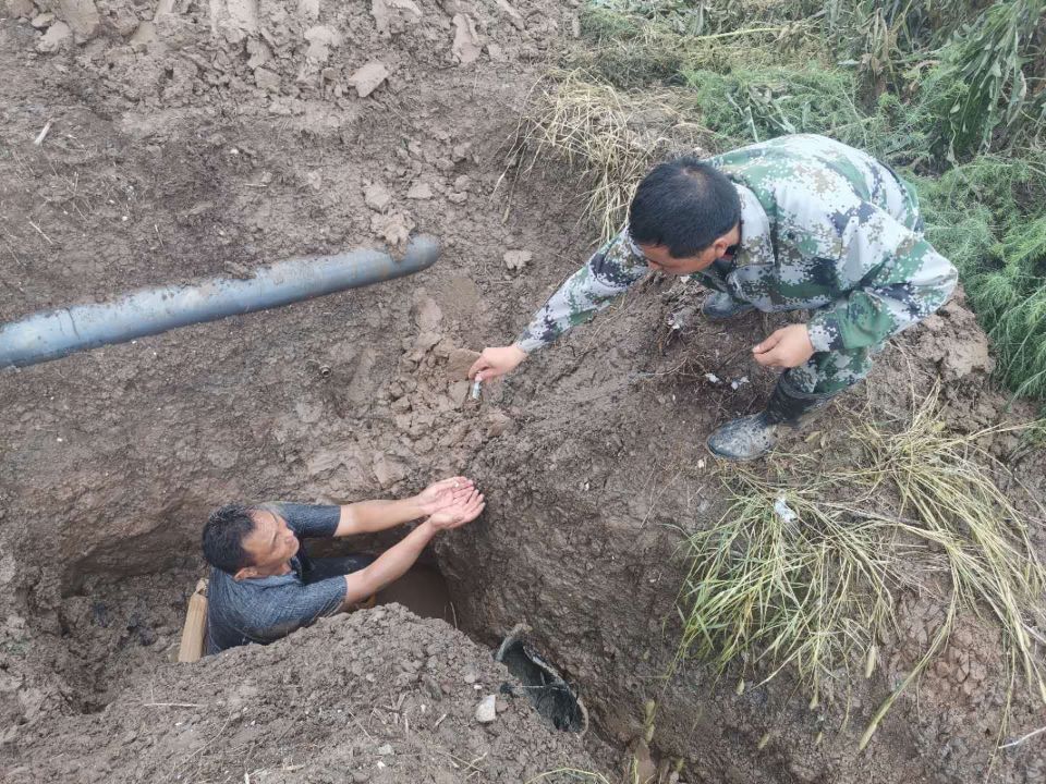 泵站是大浦工區(qū)的命脈,也是生存之源。泵站三人組席強(qiáng)余、喬效富、龔大春憑著敏銳的洞察力,迅速關(guān)掉閥門,帶上工具,立刻出發(fā)排查檢修輸鹵管道。由于昨夜突降暴雨,地面潮濕,給排查工作帶來(lái)了相當(dāng)大的困難,三人組按照多年的工作經(jīng)驗(yàn),當(dāng)機(jī)立斷,分工分路段進(jìn)行排查,與時(shí)間賽跑,早點(diǎn)找到損壞的管道就能減少鹵水的損失。經(jīng)過(guò)三人精心細(xì)致的排查,徒步六公里,終于在臺(tái)北汽車城一處雜草叢生的區(qū)域發(fā)現(xiàn)了損壞的管道,此處管道是掩埋在泥土里面,修復(fù)起來(lái)難度更大,三人立即拿起鐵锨開(kāi)挖,席強(qiáng)余顧不上管道溝里齊膝渾濁的雨水,穿著膠鞋就淌進(jìn)溝里,坐騎在管道上,雙手伸進(jìn)水里,嫻熟的進(jìn)行修復(fù)。經(jīng)過(guò)近兩個(gè)小時(shí)的維修,管道恢復(fù)正常供鹵,大程度減少了鹵水損失,為原鹽順利生產(chǎn)提供了堅(jiān)強(qiáng)有力的保障。
