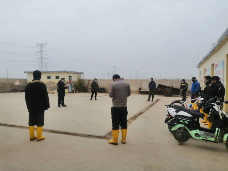 221日下午,大浦工區在二組值班室院內召開露天會議,班組員工在值班室門前分散參加活動。