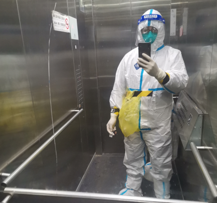 ? ? 11? 社區急需信息員十名,終于報名成功。7點集合,學習防護服穿脫,領裝備,就這樣我成為了一名“大白”。9點正式上崗忙到下午1點,抽空自拍了下,紀念自己的“第一次”。消毒,按步驟脫防護服,再消毒,領盒飯,下午加強防護培訓。第六輪核酸,做了一上午把自己整忘了。在小區里坐了2小時到傍晚才回家,心里很忐忑,感覺自己身上不干凈,會對家人不好。是妻子給我鼓勵,說有什么事我們一家人一起來。謝謝你!